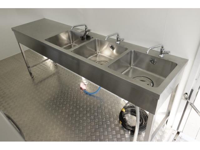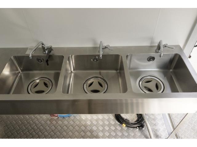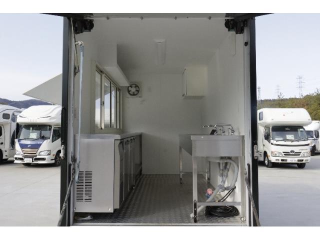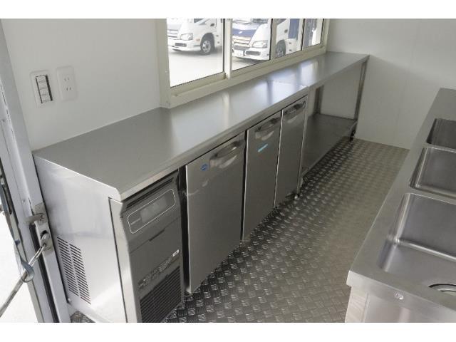 【新規架装装備】3槽シンク ホシザキ製冷蔵庫 換気扇 作業台 棚 200L搭載予定