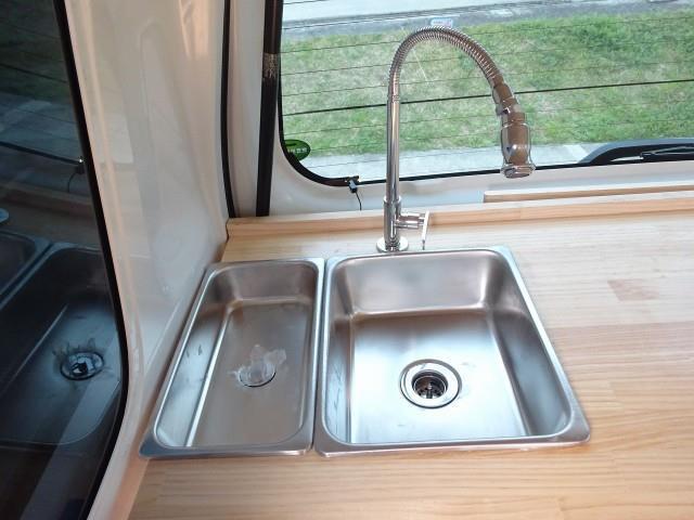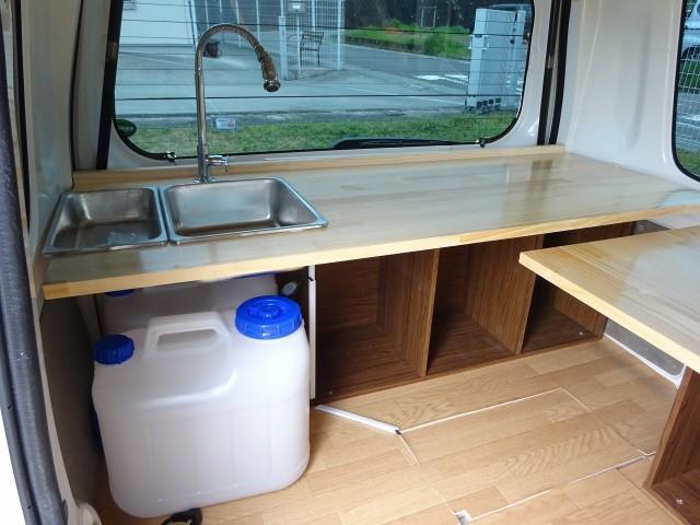 左・後ろ販売窓口 2槽シンク・給排水ポリ容器 販売カウンター 作業台