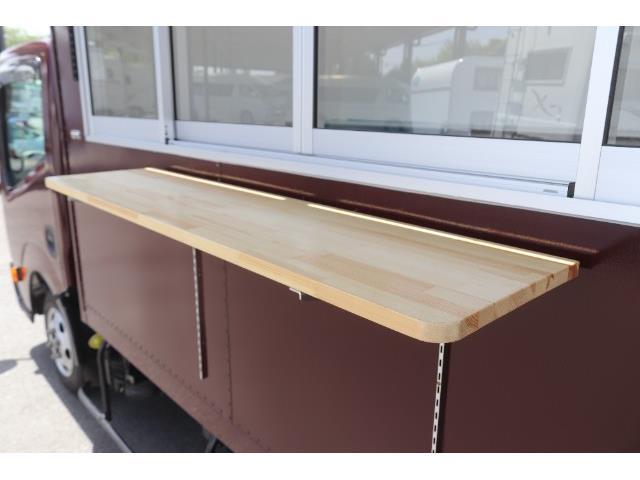 【新規架装装備】販売カウンター サッシ窓 小窓 外部電源 全塗装 換気扇 床貼り カウンターテーブル