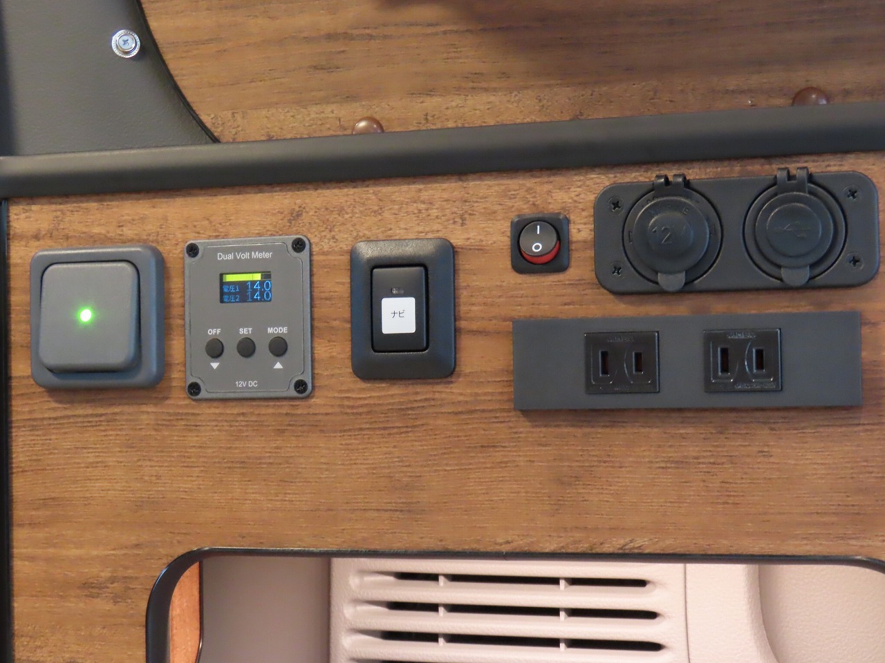 メインサブ切替SW フリップダウンモニター 電圧計 両側スライドドア 車両重量1450kg