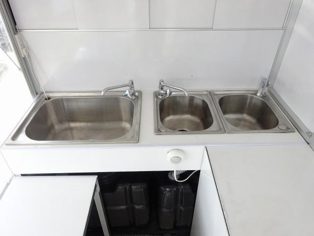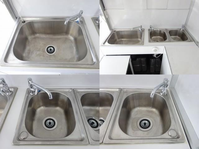 3槽シンク・非接触対応・電動ポンプ 100L給・排水タンク 換気扇 防虫用窓あり