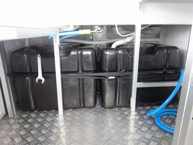 左側・販売窓口 100L給水タンク 100L排水タンク 外部電源取り込み