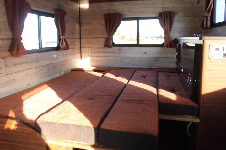 乗車4名 就寝大人2名/子供4名 長さ389 幅177 高さ251 ハイゼット 4WD バンクベッド