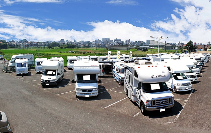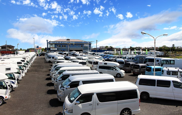 キャンピングカーに特化した埼玉狭山店は常時100台前後の在庫数を展示し、キャンピングカーのメンテナンスにも定評のあるお店です。また、関東圏のフジカーズジャパン直営店の中でも新車ラインナップを多く展示しているお店です。